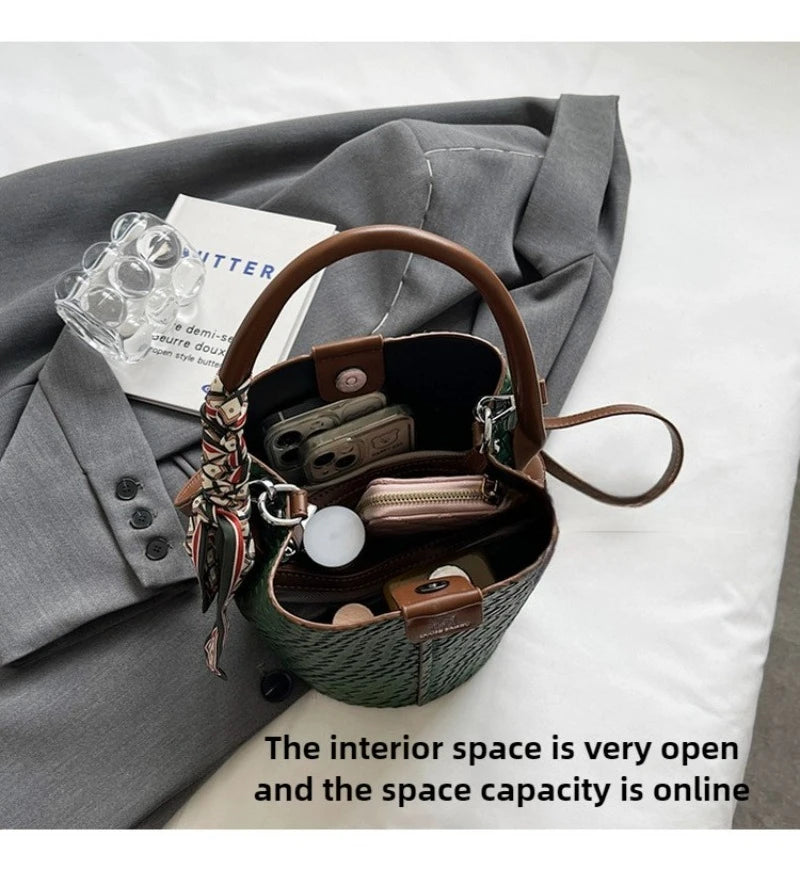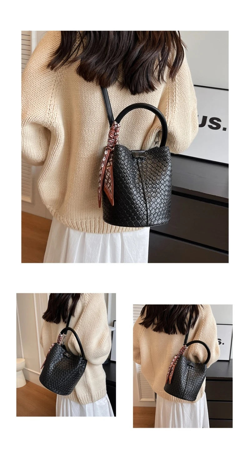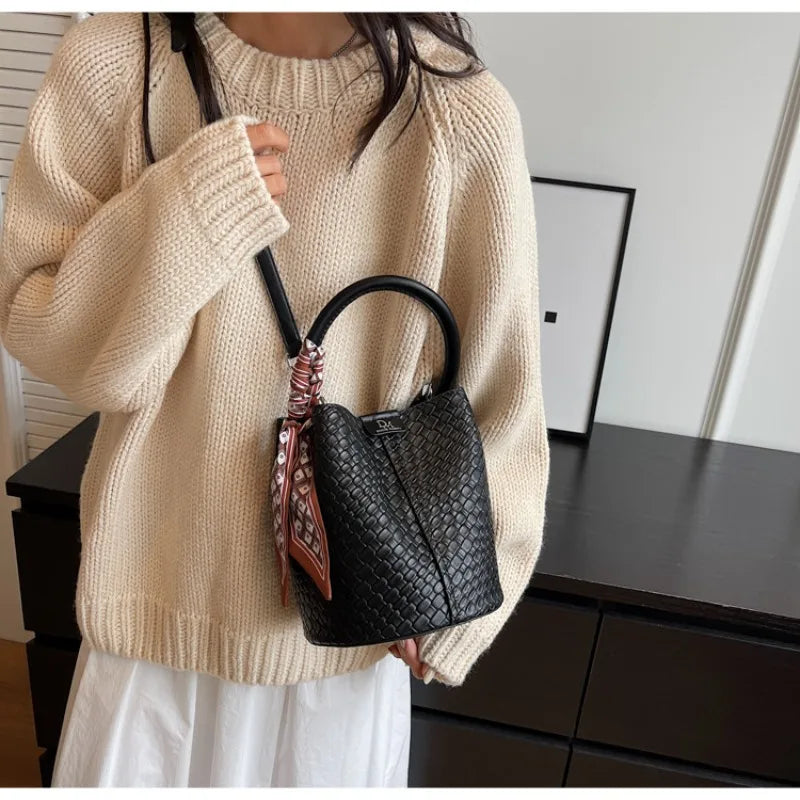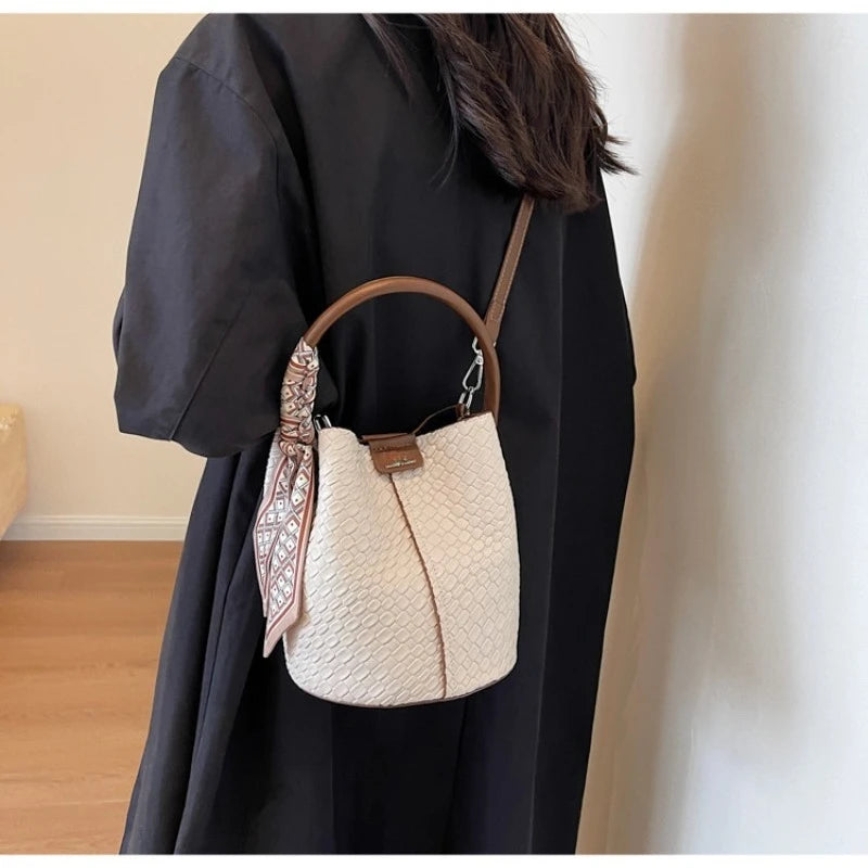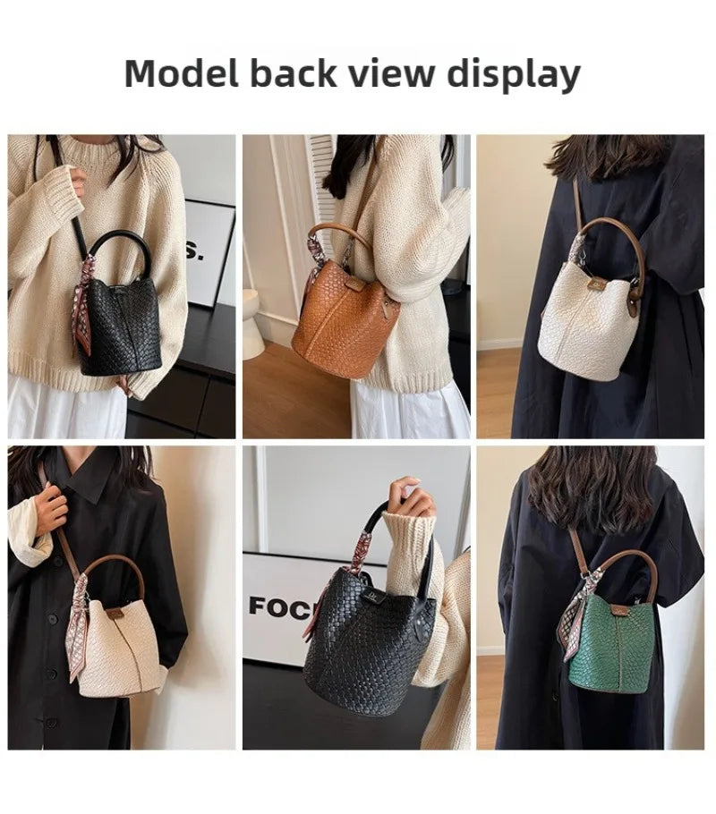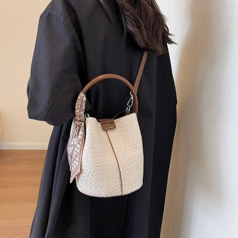 Bolso bandolera cilíndrico de piel sintética para mujer, bolso de hombro de mano de nuevo estilo a la moda, bolso tipo cubo para ir al trabajo de gran capacidad