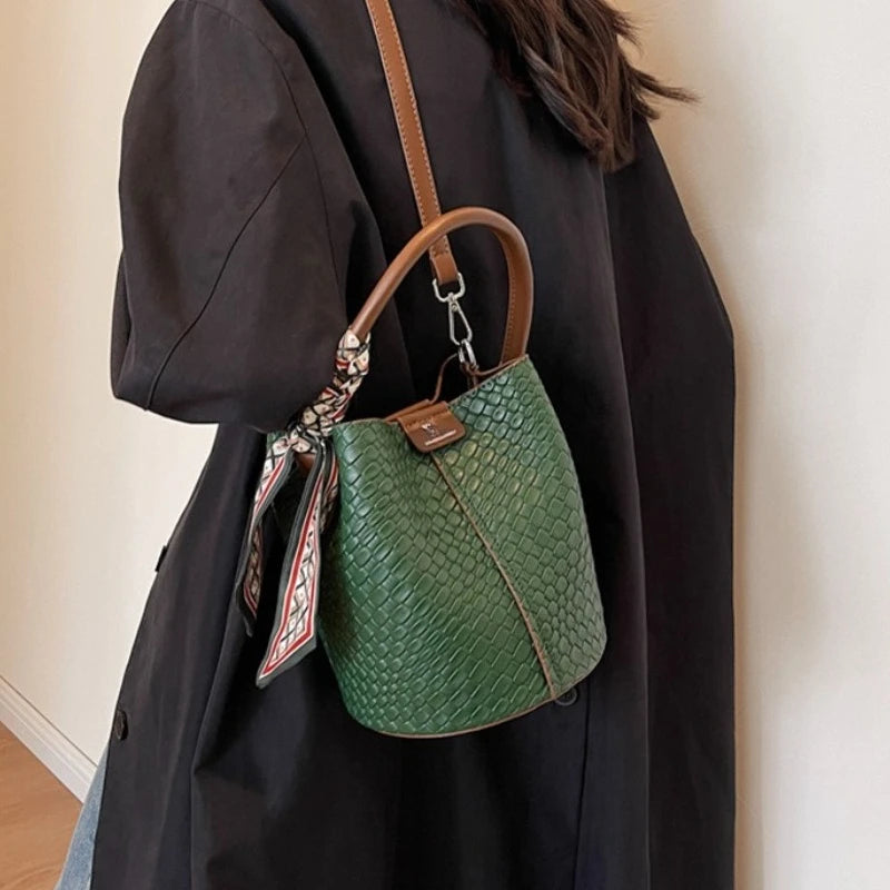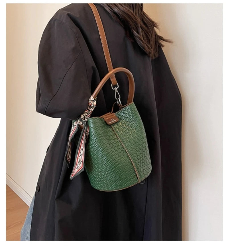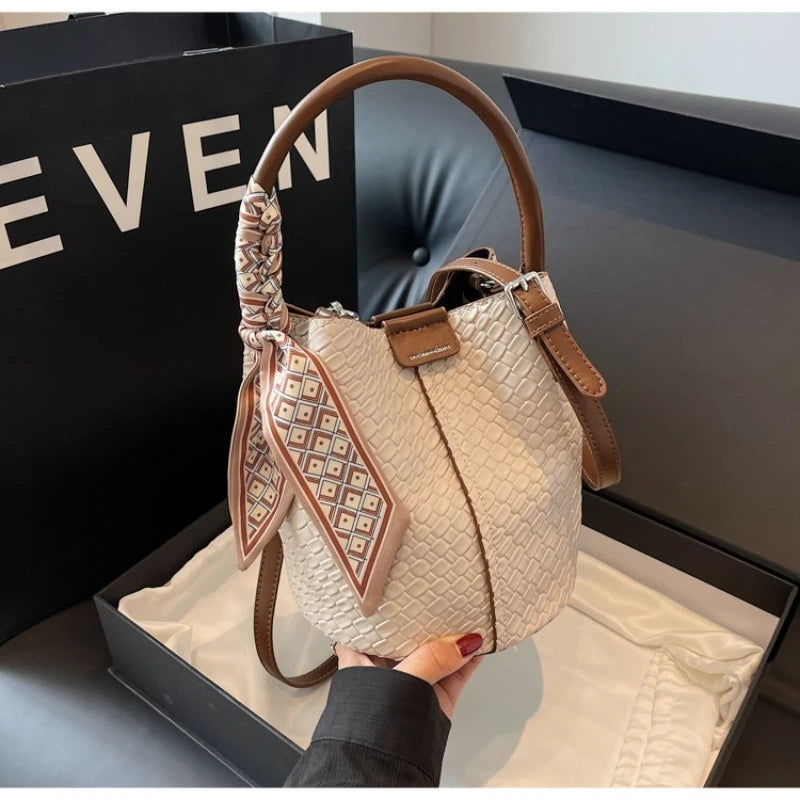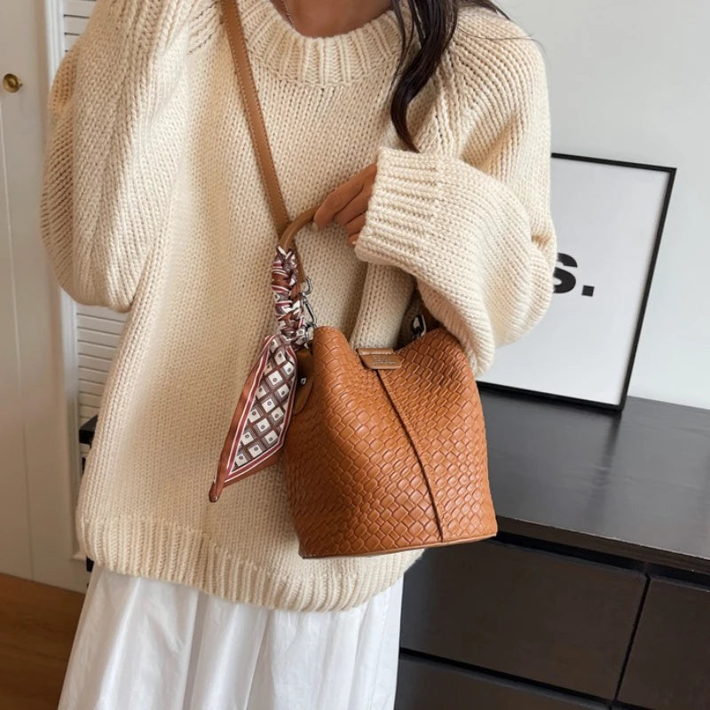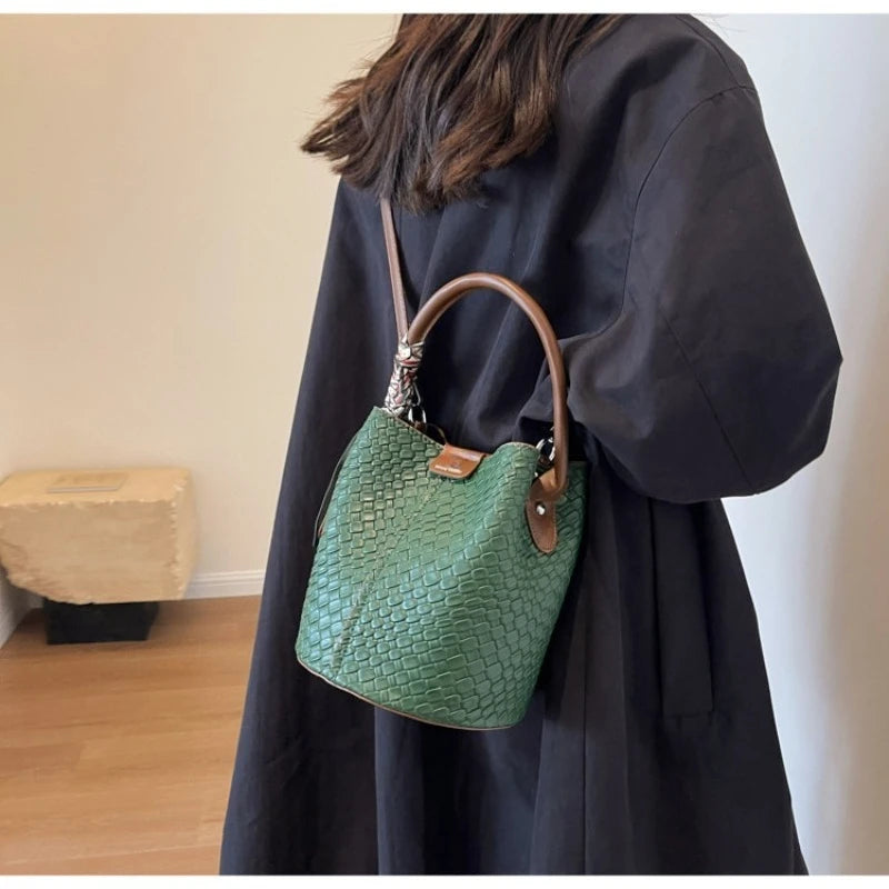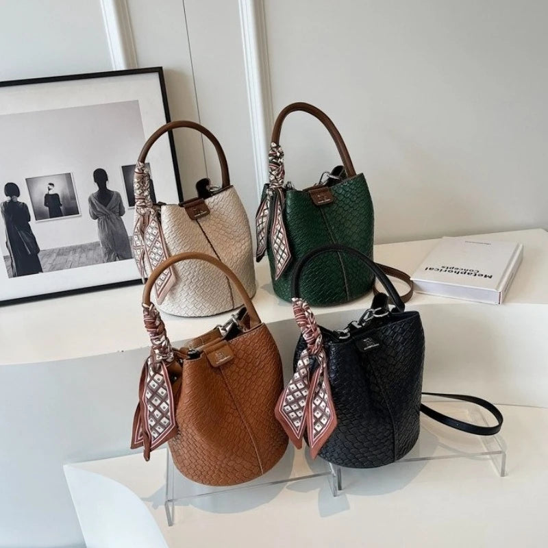 Bolso bandolera cilíndrico de piel sintética para mujer, bolso de hombro de mano de nuevo estilo a la moda, bolso tipo cubo para ir al trabajo de gran capacidad