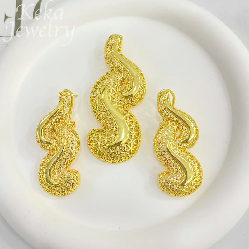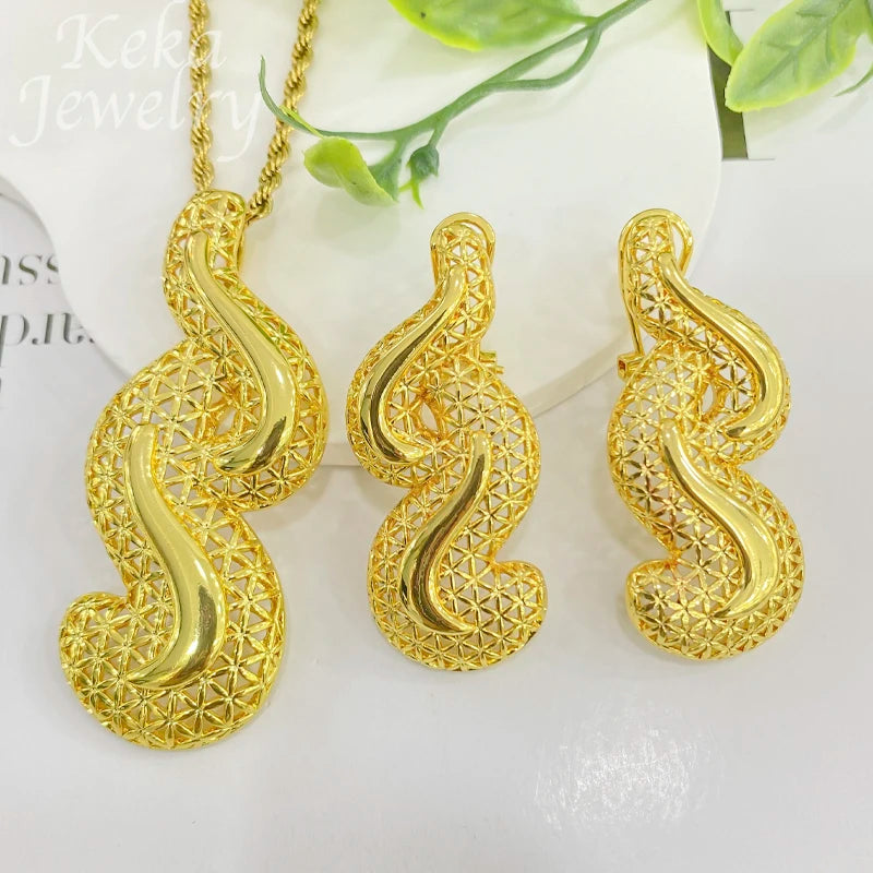 Conjuntos de joyería dorada de Dubái para mujer, collar nupcial italiano de lujo, pendientes colgantes, accesorios para fiesta de boda, regalos para mujer