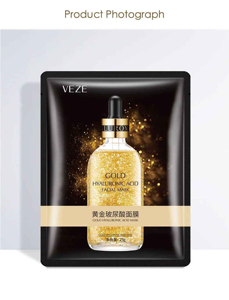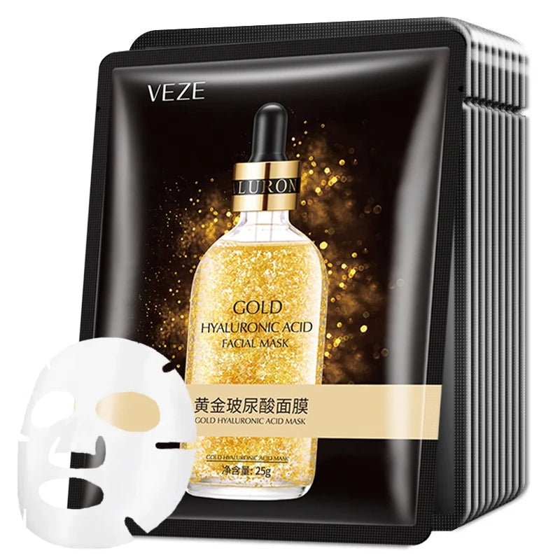 Mascarilla Facial de ácido hialurónico de oro de 24K, 10 Uds., reafirmante, hidratante, belleza, hoja para el cuidado de la piel, mascarilla Facial, cuidado Facial