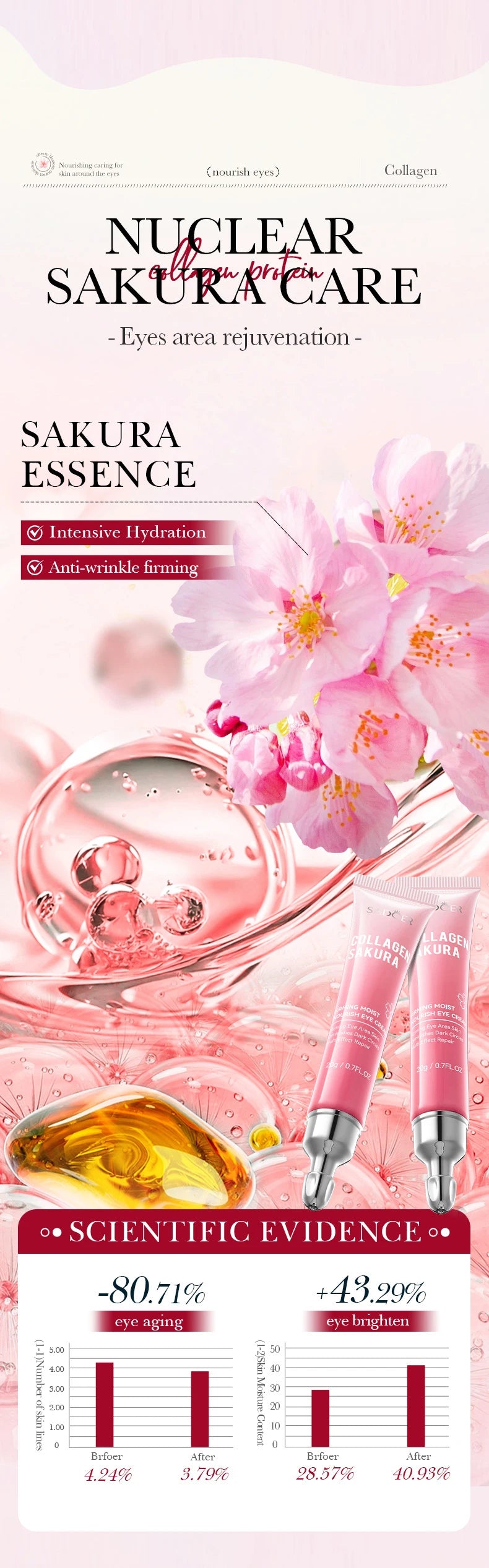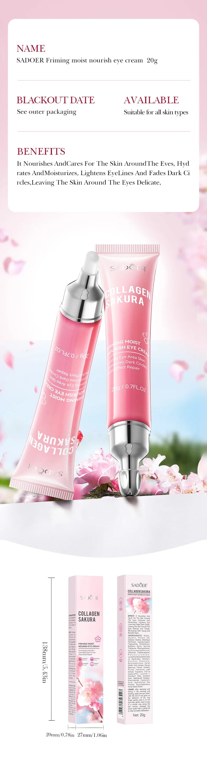 SADOER Sakura crema de ojos Anti ojeras eliminación de ojos bolsas reafirmantes cremas hidratantes para ojos belleza ojos cuidado de la piel
